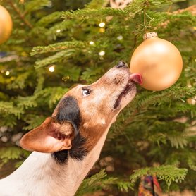 A színes, csillogó karácsonyfadíszek játékra csábíthatják a kíváncsi ebet, pláne, ha formájukban még emlékeztetnek is a labdára! Mind az üvegből készült, mind a műanyag függőknek megvan az a veszélye, hogy kutyád szétrágja őket, előbbinél ráadásul ezzel komolyan meg is sértheti magát.