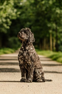 The hair of the Portuguese Water Dog is similar to human hair. It never stops growing, so it needs to be groomed frequently and combed thoroughly 2-3 times a week. It is often referred to as a hypoallergenic dog, as it sheds very little (if any) hair. However, it is important to know that there is no such thing as a completely hypoallergenic dog; there is just less chance of someone becoming allergic to it. There are usually two different styles of coat trimming: the simplest is the so-called retriever trim, which means that the hair is trimmed to 2.5 cm all over the dog's body. The other, more elegant style is the lion cut, where the hair is trimmed short on the back and limbs, similar to the poodle. Claws need to be trimmed occasionally if they become too long. Eyes and ears should always be kept clean.