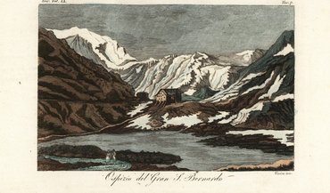 High in the Alps, near the border of Italy and Switzerland, lies the Great St. Bernard Pass, which has been used by people to cross the mountain range since the Bronze Age. During their conquests, the Romans also built a temple here in honor of Jupiter. Saint Bernard of Menthon (who was canonized in 1681 and declared the patron saint of the Alps in 1923) founded the Great St. Bernard Monastery on this site in 1049, which became a refuge for travelers.